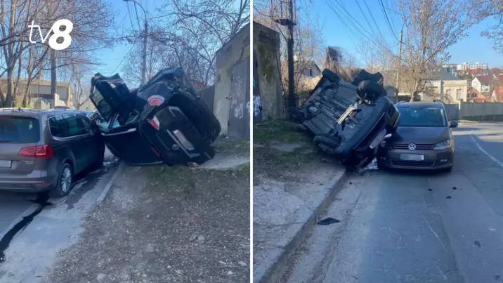 /ВИДЕО/ В Кишиневе столкнулись два автомобиля, один из них перевернулся