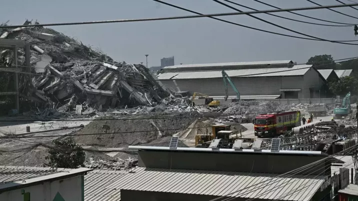 Autoritățile din Bangkok anunță că 43 de muncitori au fost prinși sub dărâmături, pe șantierul blocului prăbușit. Operațiunile de salvare au început imediat, dar șantierul este acum o uriașă grămadă de moloz.