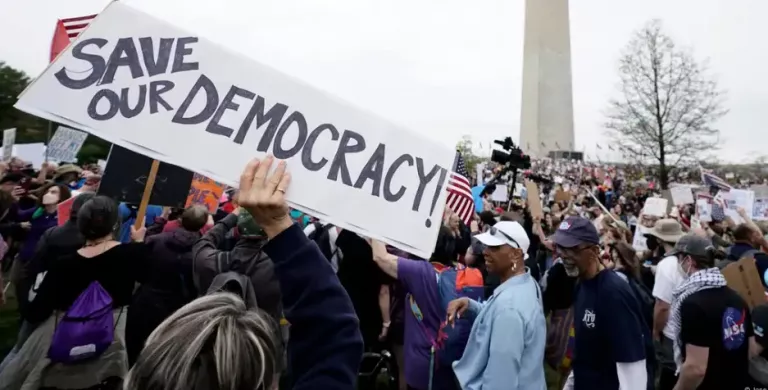 В Вашингтоне протестующие собрались на Национальной аллее с плакатами «Демократия, а не диктатура» и «Я люблю федеральных работников». Протестующие заявили свое несогласие с политикой нового главы государства в сокращения программ здравоохранения, увольнений в Министерстве образования, отмены программ поддержки инклюзивности, ЛГБТК+ и иммигрантов, а также новых тарифов против почти всех стран мира, что уже привело к росту цен в США.