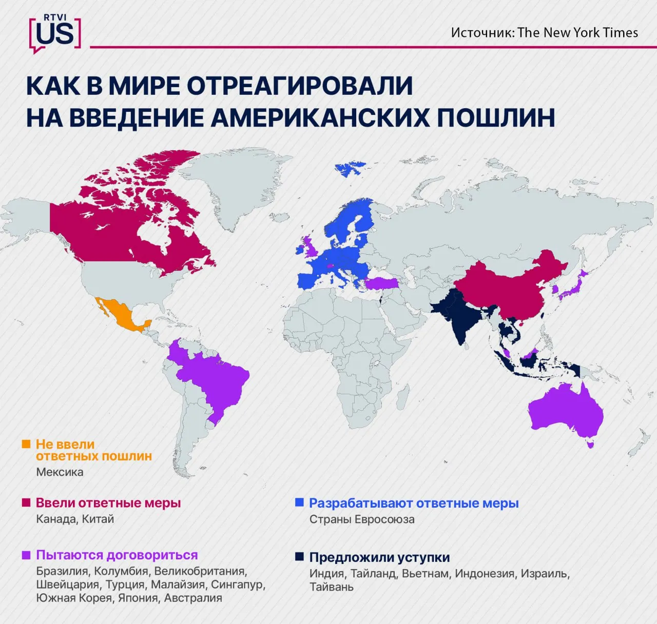Президент США Дональд Трамп объявил 9 апреля о 90-дневной приостановке введения повышенных ввозных пошлин для более чем 75 стран. Список он не привел.