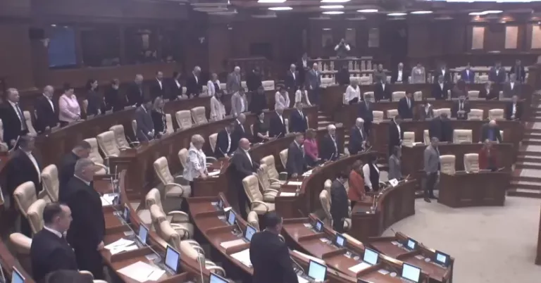 На заседании 17 апреля в парламенте Молдовы почтили память 34 жертв ракетного удара по украинскому городу Сумы. Трагедия произошла 13 апреля, в Вербное воскресенье. Украинские власти сообщили о попадании двух российских ракет по жилой застройке, в Минобороны РФ признали удар, но заявили, что ударили по объекту дислокации украинских военных.