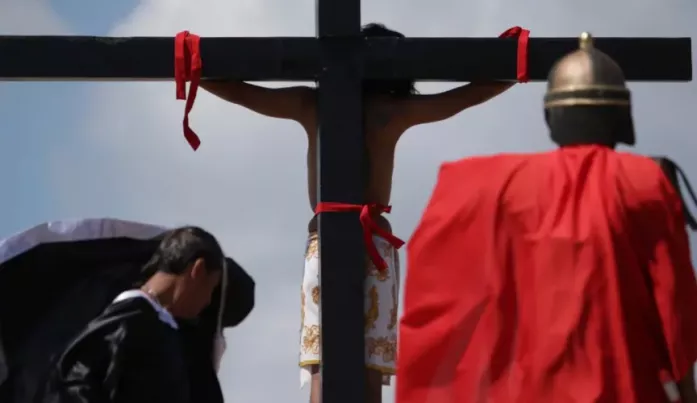 В деревне Сан-Педро-Кутуд на севере Филиппин прошла традиционная реконструкция распятия Иисуса Христа. Центральной фигурой стал 64-летний Рубен Энайе, который в 36-й раз принял участие в обряде, добровольно позволив прибить себя к кресту.