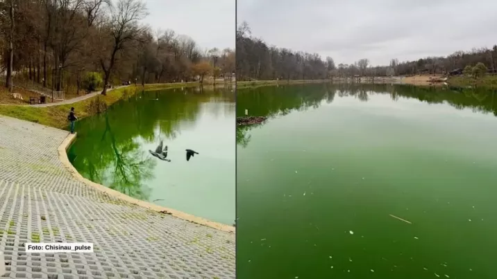 /ВИДЕО/ В Кишинёве в озеро на Рышкановке попала горячая вода. Оно окрасилось в зелёный цвет