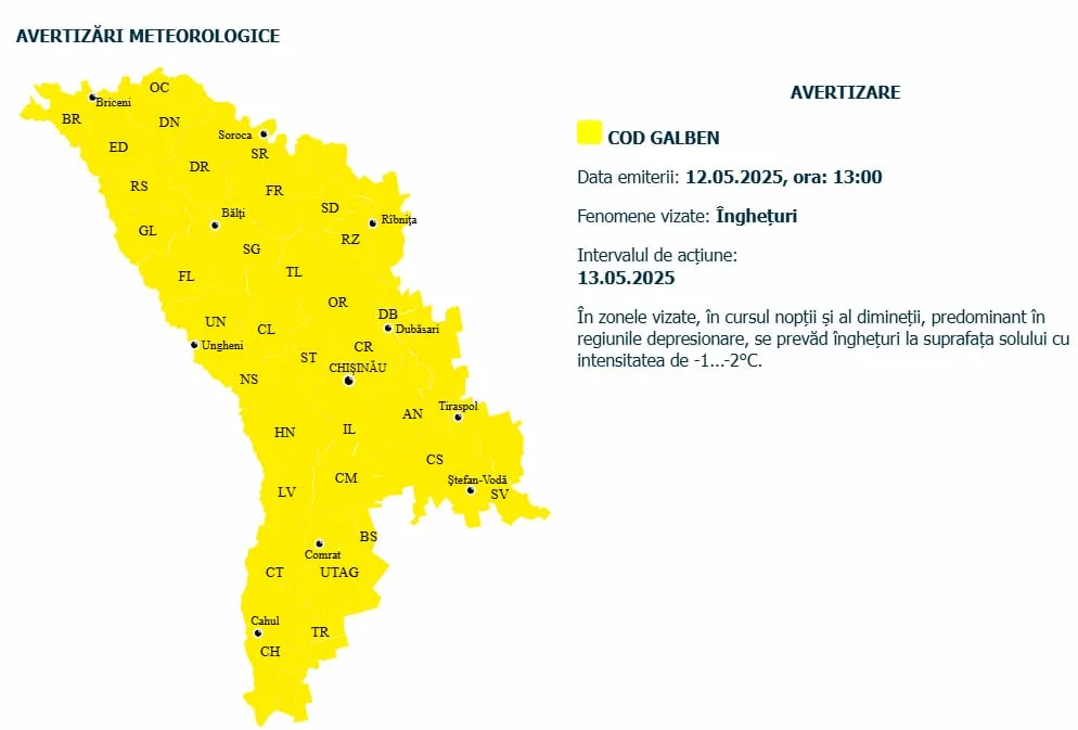 По всей стране в ночь на вторник, 13 мая, вновь ожидаются заморозки. Государственная гидрометеорологическая служба объявила желтый код погодной опасности.