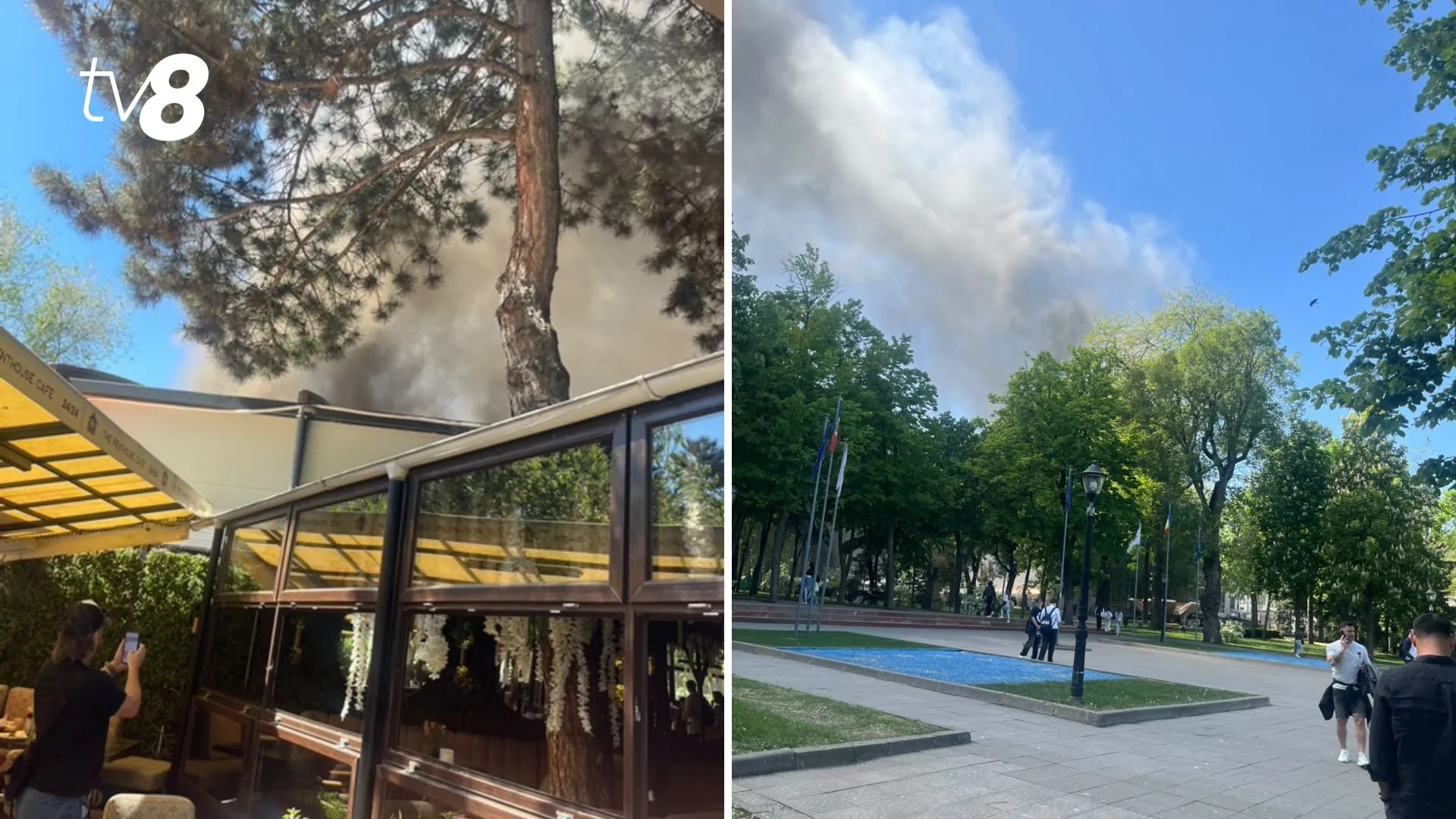 /ВИДЕО/ Пожар в центре Кишинева: загорелся ресторан в парке Штефана чел Маре