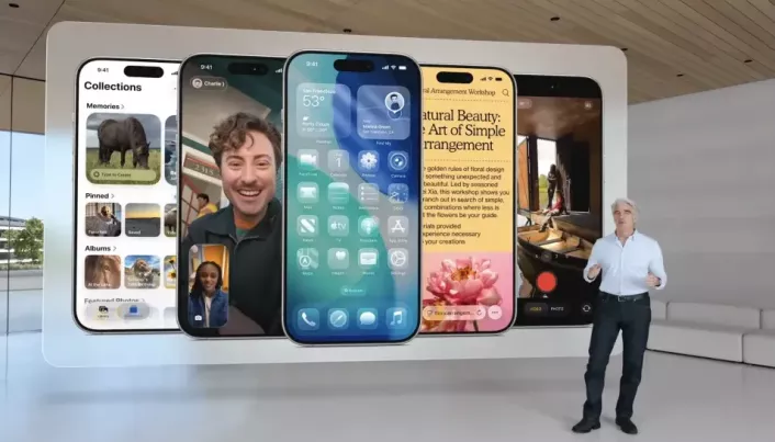 Интерфейс динамически адаптируется к действиям пользователя: панели навигации уменьшаются при прокрутке, чтобы выделить контент, и плавно расширяются при необходимости. Обновлены стандартные приложения, такие как "Камера", "Фото", "браузер Safar"i и "приложение Apple Music", с упором на удобство и эстетику. Пользователям доступны прозрачный интерфейс, а также классические светлый и тёмный режимы.