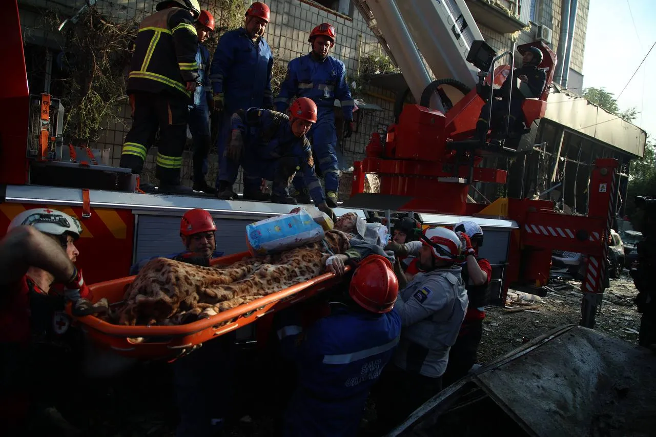 Наиболее серьёзные разрушения — в Соломенском районе, где обрушился подъезд жилого дома. Спасательные службы продолжают разбор завалов.