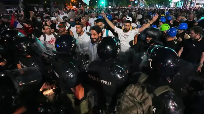 В Белграде вторую ночь подряд продолжаются массовые протесты. Тысячи людей вышли на улицы, строят баррикады и требуют отпустить задержанных в предыдущие дни. Протесты длятся уже почти восемь месяцев - люди выступают против коррупции и настаивают на досрочных выборах.