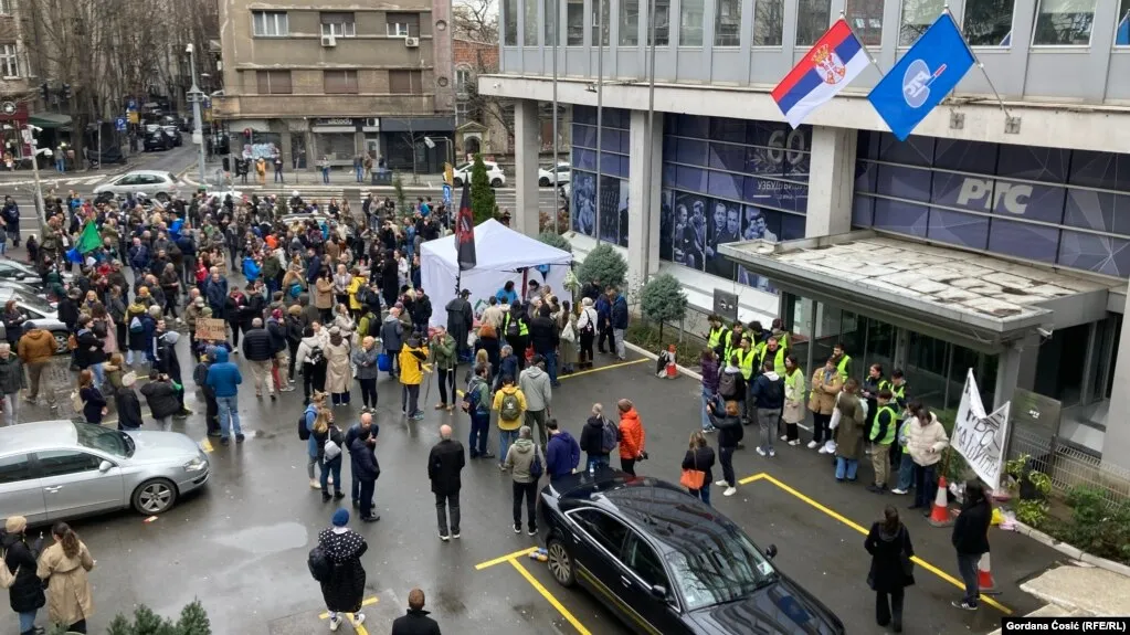 В Нови-Саде - городе, где протесты начались восемь месяцев назад, митингующие окружили офис правящей Сербской прогрессивной партии и забросали его яйцами. Волна протестов в Сербии началась после обрушения бетонного навеса на железнодорожном вокзале 1 ноября прошлого года, унесшее жизни шестнадцати человек.