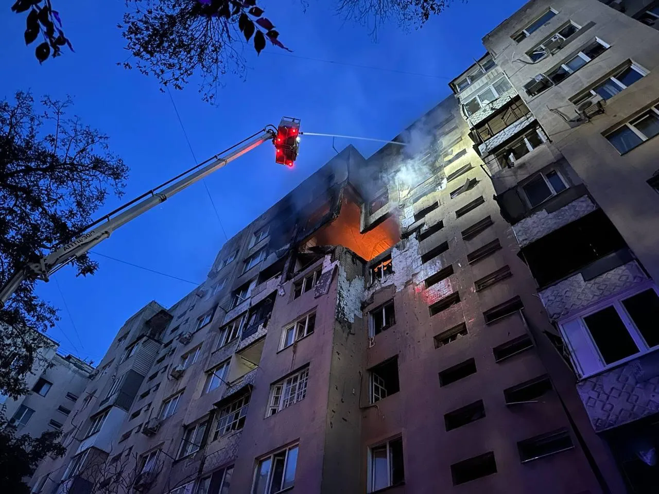 Как уточнили в Государственной службе по чрезвычайным ситуациям Украины, дрон попал в 9-этажный жилой дом, в результате чего пожар возник на 7, 8 и 9 этажах.
