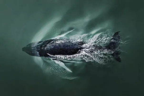 Из более чем 1500 портфолио главный приз получила Джоанна Стайдл, профессиональный пилот дрона и художница из Хэмптонса, Нью-Йорк. Победное фото запечатлело момент, когда акула приближается к косяку рыб. Снимок отличился не только по композиции, но и по цветовому балансу — холодные оттенки моря создают визуальную гармонию. Стайдл получила главный приз в размере 5 000 долларов.
