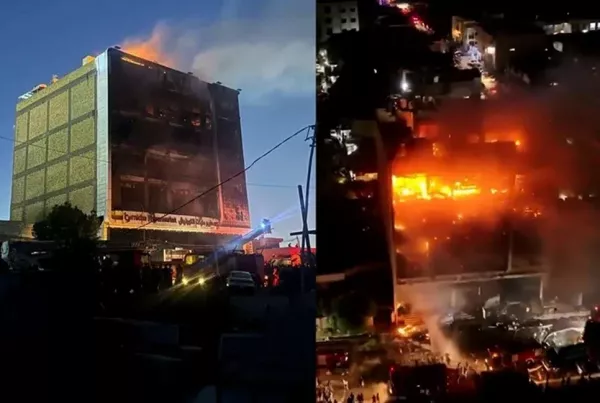 Это один из крупнейших торговых центров города Кут на востоке Ирака. Пожар начался на первом этаже и быстро распространился на все пять этажей.