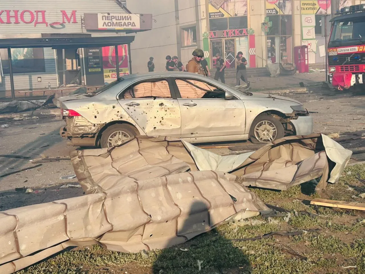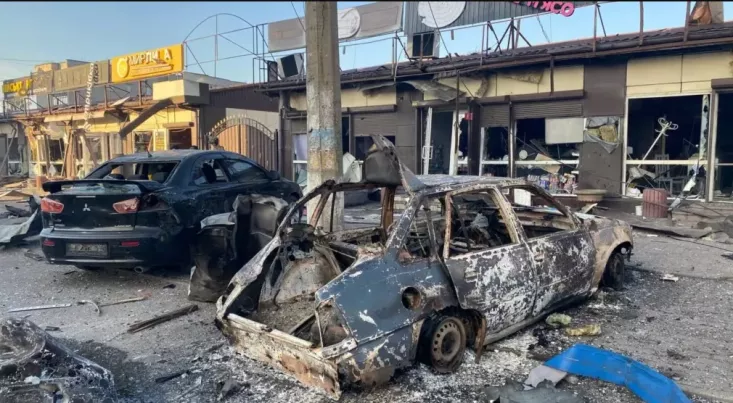 Как сообщил глава региональной администрации Вадим Филашкин, 27 человек получили ранения. Помимо торговых рядов, повреждены 13 домов и автомобили. По данным МВД, на месте удара вспыхнул пожар, на тушение которого отправили несколько расчётов.