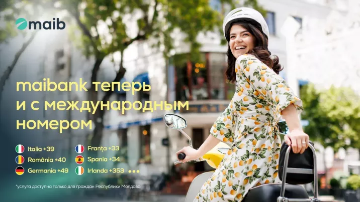 Вы — гражданин Республики Молдова и живёте за границей? Теперь вы можете пользоваться всеми услугами maib полностью онлайн — через приложение maibank, быстро, безопасно и без визитов в банк. Все, что вам нужно — это активный международный номер, выданный в одной из 31 страны из списка ниже.