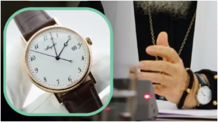 Как утверждают журналисты-расследователи, речь идёт о модели Breguet Classique 5177BR, корпус которой выполнен из 18-каратного золота и сапфира.