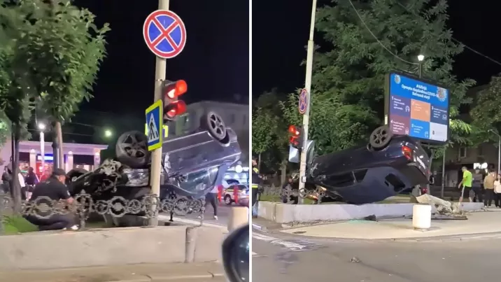 В центре столицы в ночь на 19 августа произошло дорожно-транспортное происшествие, в результате которого автомобиль вылетел с дороги, перевернулся, врезался в столб и в ограду клумбы. По данным правоохранителей, ДТП спровоцировал другой автомобиль.