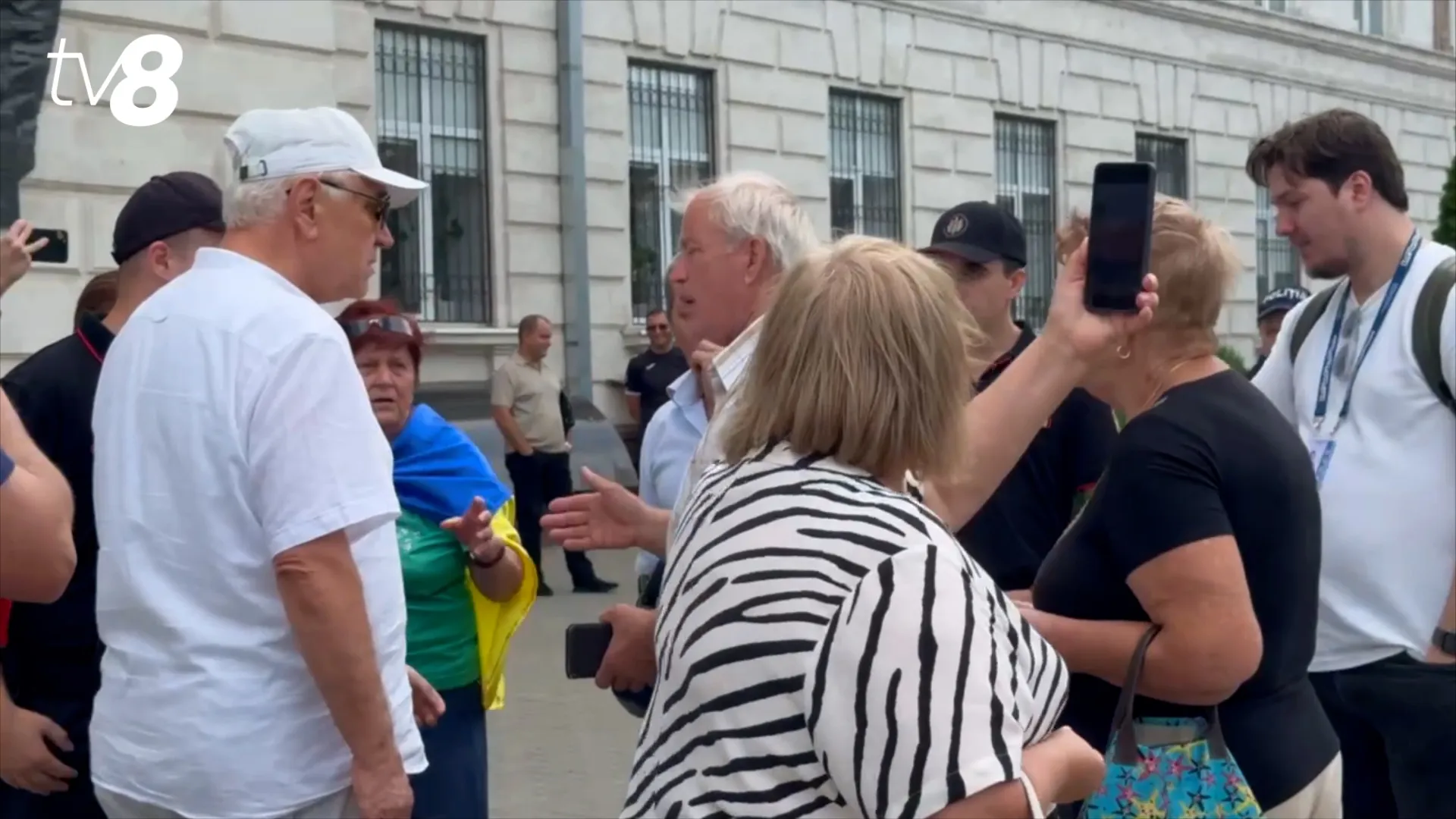 Одна из контпротестующих пришла с флагом Украины, чтобы заявить, что выступает против пророссийских сил в Молдове, к которым причисляется и Илан Шор. Это вызвало раздражением у некоторых протестующих, но полиция встала между ним и предотвратила возможные стычки.