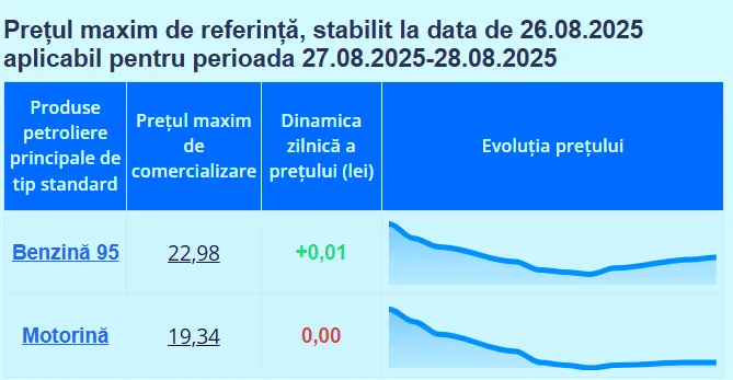 Национальное агентство по регулированию в энергетике (НАРЭ) обновило максимальные цены на основные виды горючего. Так, предельная стоимость бензина Аи-95 составит 22 лея и 98 банов, а дизельного топлива – 19 леев и 34 бана.