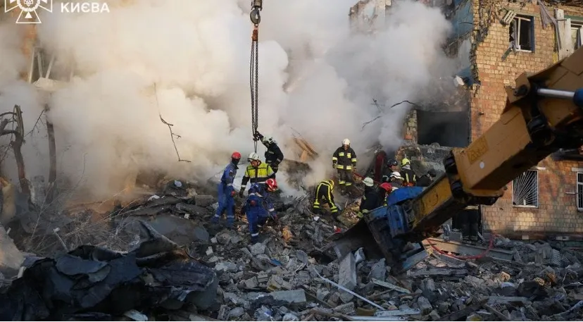 Украинские власти заявили, что во время комбинированной атаки РФ с использованием ударных беспилотников и ракет, одна из ракет попала в пятиэтажный дом в Дарницком районе Киева. Как сообщили в местной военной администрации, количество жертв к середине дня выросло до семнадцати, включая четверых детей (младшему из которых два года). Пострадало более 48 человек.