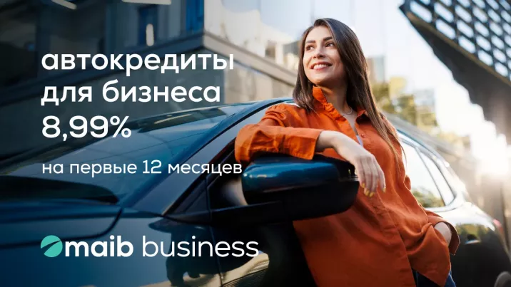 Maib запускает промо-кампанию, предоставляя компаниям из Республики Молдова возможность получить автокредиты для бизнеса с фиксированной ставкой 8,99% в леях, в первые 12 месяцев - для всех кредитов, оформленных в период с 1 сентября по 31 октября 2025 года.