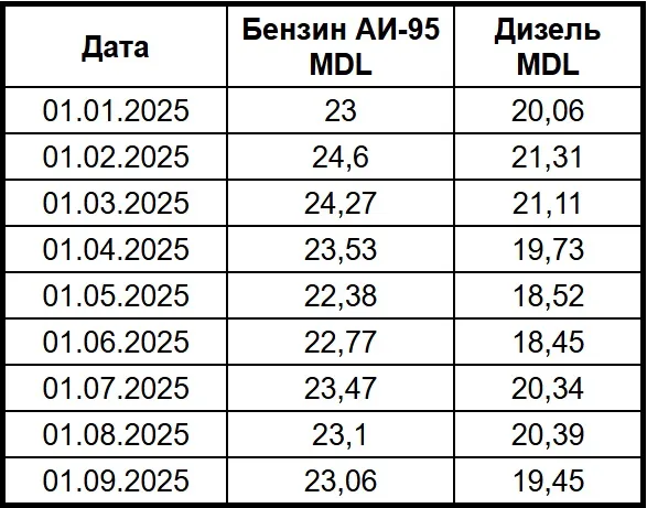 В среду максимальная цена на бензин АИ-95 составит 23,41 леев (+1 бан), а на солярку поднимется до 19,86 леев (+3 бана).