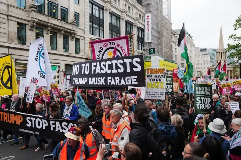 Эта акция протеста организована коалицией Stop Trump UK, объединяющей более 50 организаций, включая климатических, антирасистских и пропалестинских активистов.