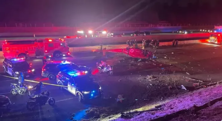 По данным CBS Sacramento, камеры очевидцев зафиксировали момент крушения, а на фотографиях с места происшествия виден перевернутый вертолет, лежащий поперек нескольких полос и окруженный обломками.