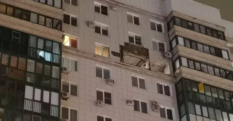 По данным Shot, беспилотник влетел в дом жилого комплекса "Изумрудные холмы" около 4:15 утра. После столкновения со зданием на уровне 14 этажа дрон сдетонировал. Часть стены вырвало взрывной волной, а обломки раскидало по всему двору. Три квартиры получили повреждения. Также осколками были посечены несколько припаркованных рядом автомобилей. Из дома самостоятельно эвакуировались более 70 человек.