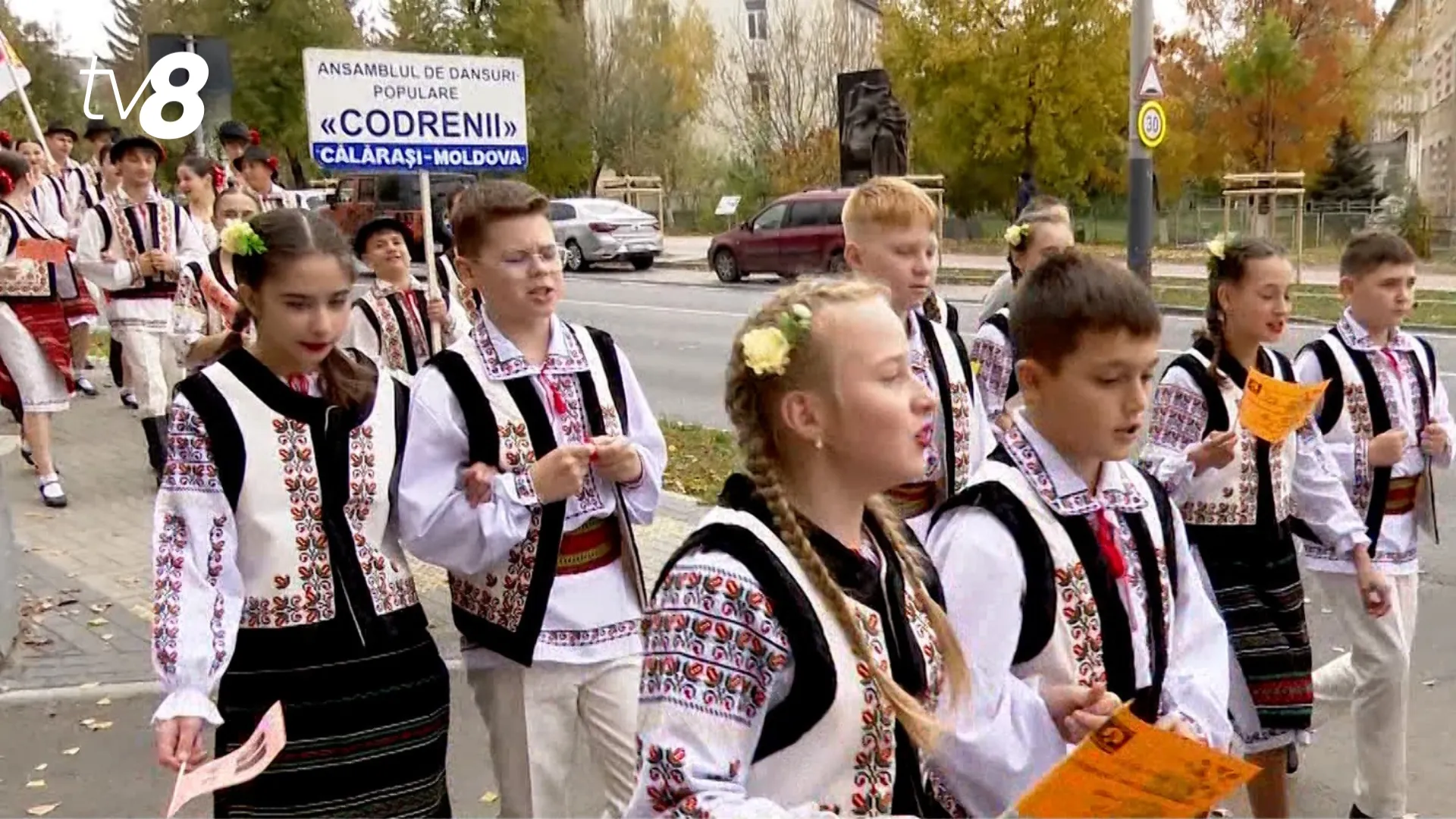 Сотни школьников, одетых в яркие национальные наряды, вышли из двора лицея и прошли маршем по улицам Христо Ботев, Мэтей Мило и по бульвару Дачия. Хором они исполняли молдавские песни, создавая атмосферу праздника и радости.