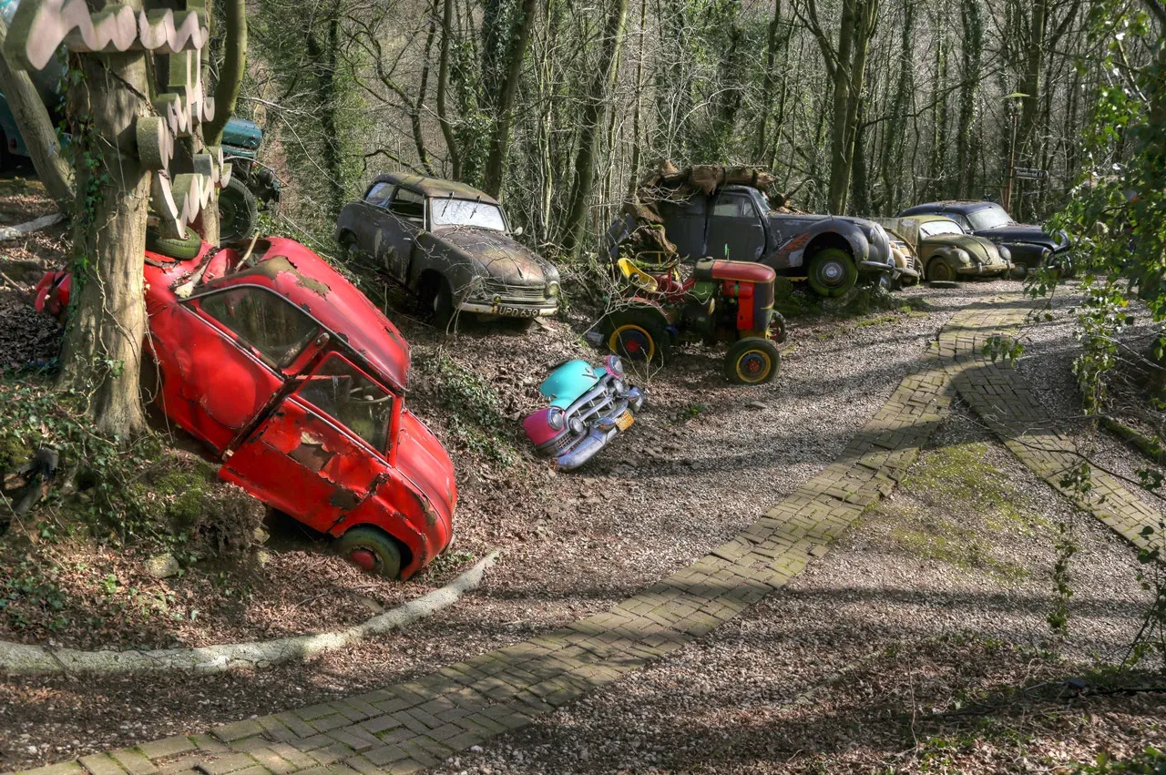 Парк расположен в немецком Неандертале, и за годы ржавчина, дожди и непогода превратили машины, большинство из которых были полностью на ходу, в уникальные произведения искусства под открытым небом.