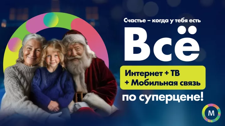 ВСЁ — Интернет, ТВ и Мобильная связь от одного оператора. Проще. Выгоднее. По-праздничному.