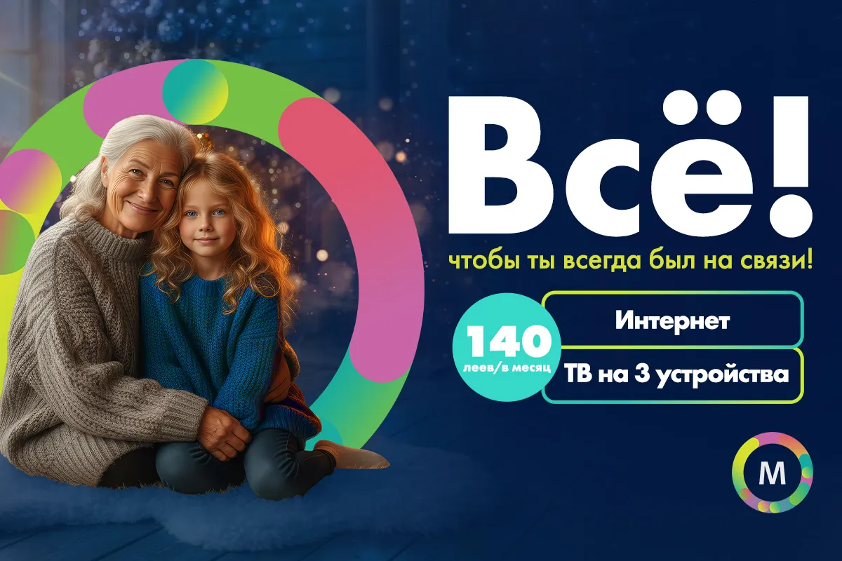 Зимние праздники начинаются с моментов, которые собирают нас вокруг ёлки: долгие вечера в кругу семьи, запах мандаринов и тёплый свет гирлянд. В этой атмосфере Moldtelecom запускает самую щедрую рождественскую кампанию — предложения на интернет, телевидение и мобильную связь, созданные для того, чтобы объединять самых важных для вас людей.