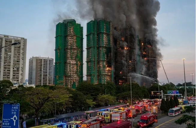 Пожар начался в среду днем в комплексе Wang Fuk Court в районе Тай По, северном пригороде у границы с материком и продолжается до сих пор. К утру четверга возгорание в четырех башнях из семи удалось локализовать. В плотно застроенном комплексе насчитывается 2000 квартир в которых проживают более 4600 человек.