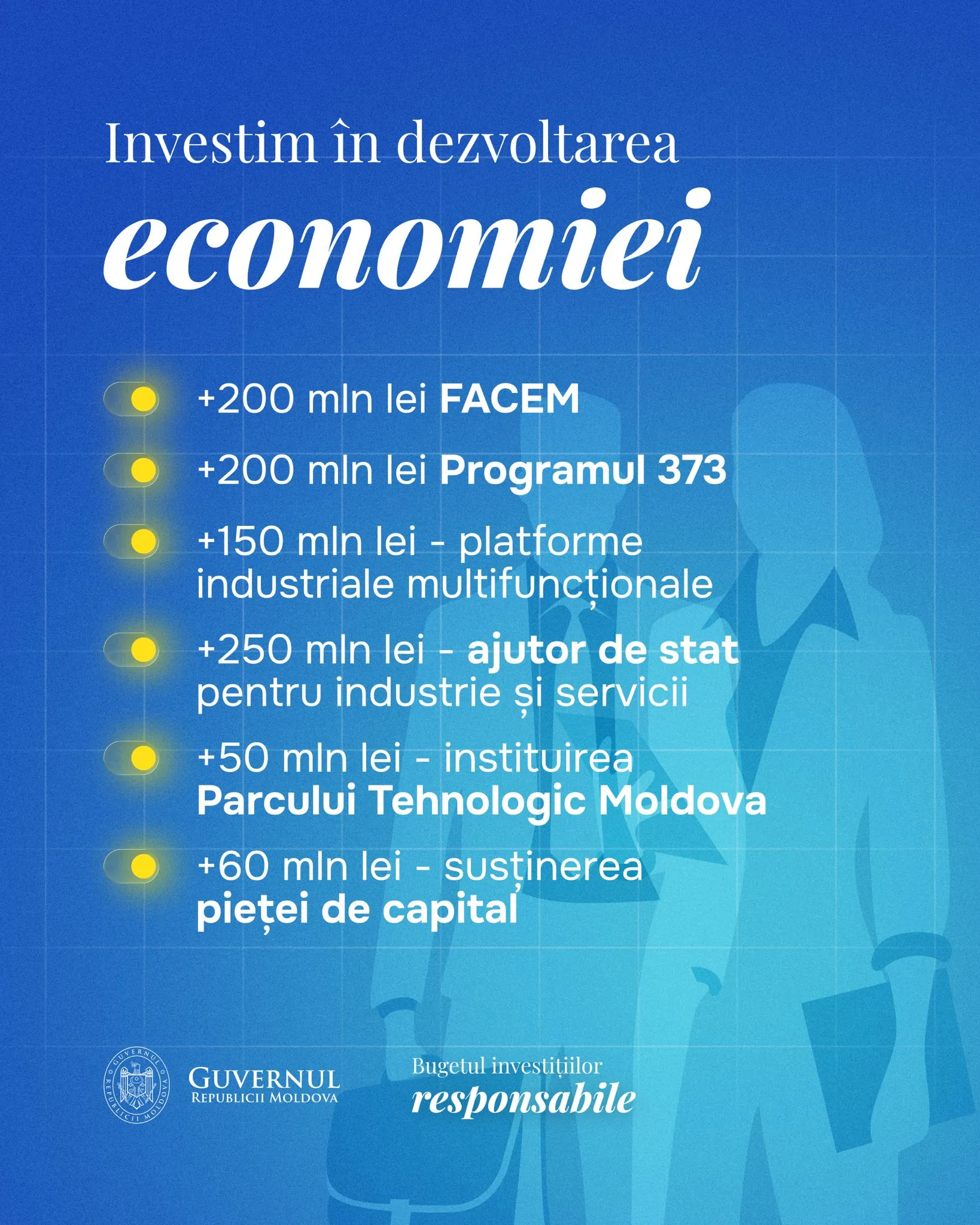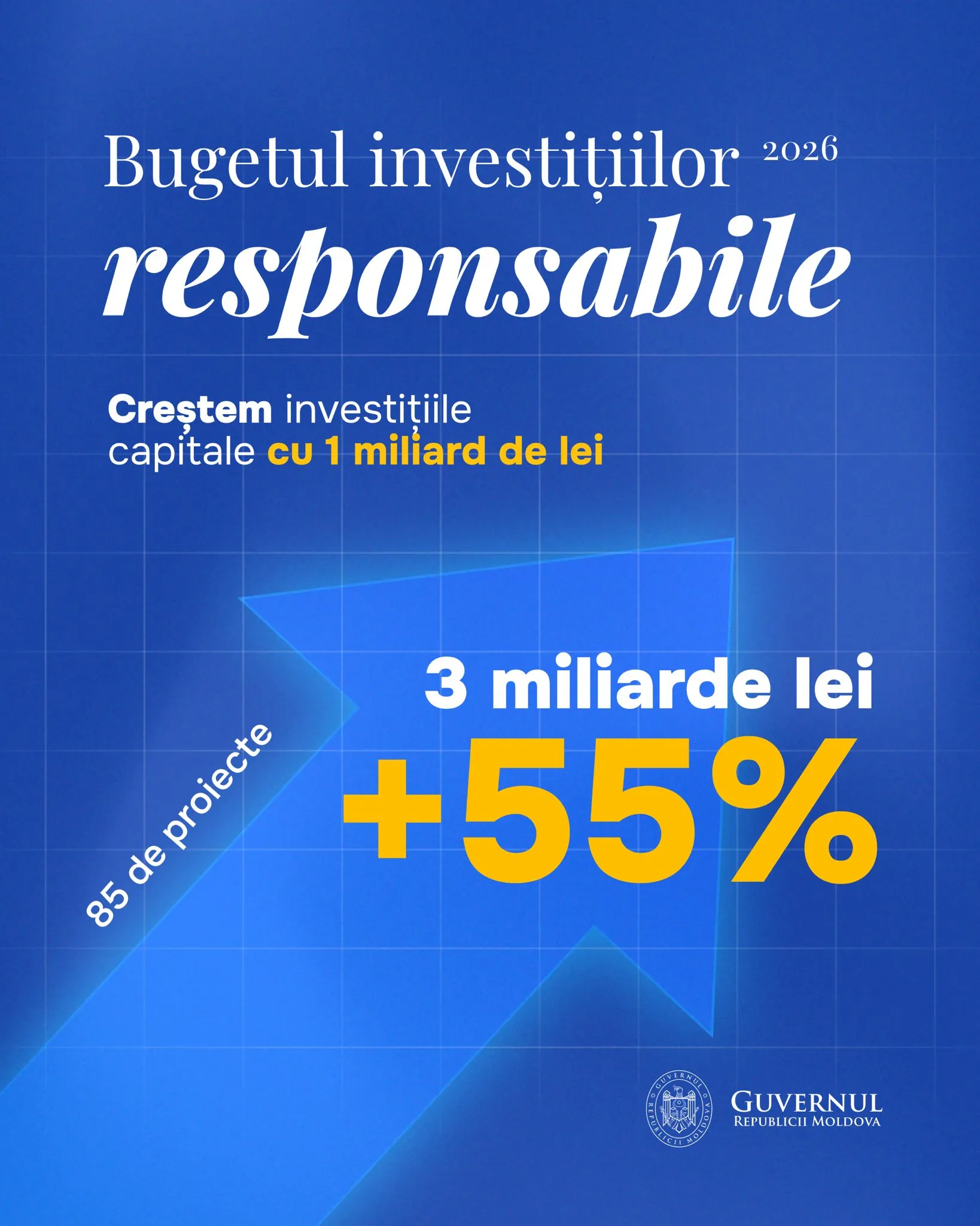 В правительстве заявили, что приоритетом остается рост капитальных вложений. Капитальные инвестиции запланированы в размере 3 млрд леев, что на 55% больше, чем годом ранее — самый значительный рост за последние годы.