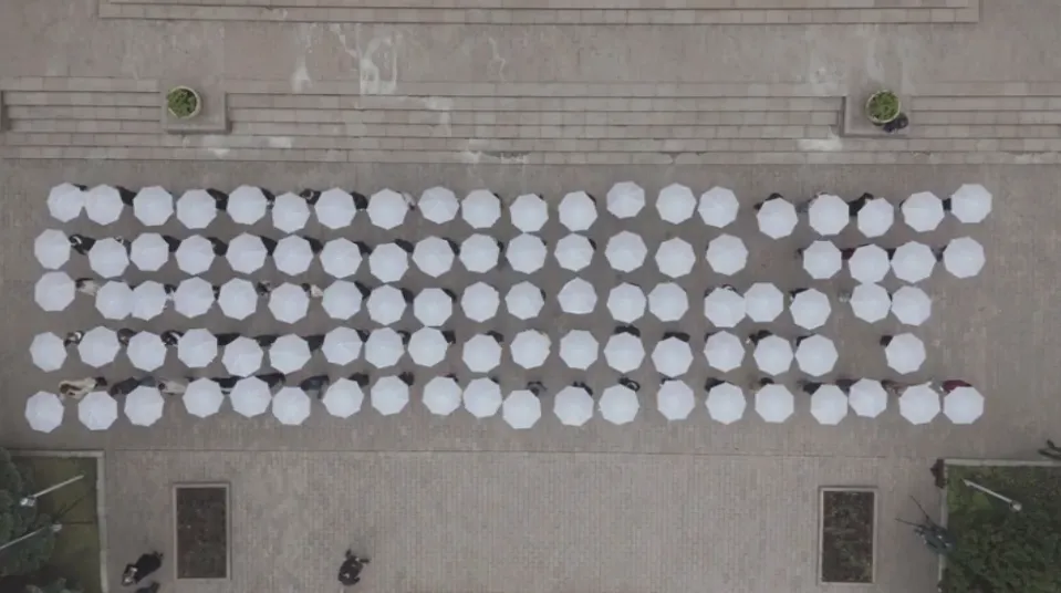В финале флешмоба студенты сложили зонты в форме фразы: «Я выбираю быть честным», подчёркивая своё стремление соблюдать принципы добросовестного обучения — «в жизни, на экзаменах и во всём, что я делаю».