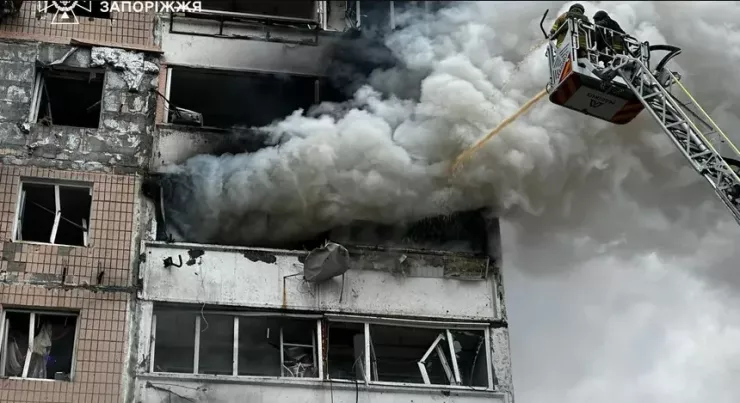 В ночь на 16 декабря российские военные ударили по девятиэтажному жилому дому в центре Запорожья, пострадали четыре человека. Как сообщили в Государственной службе Украины по чрезвычайным ситуациям, в доме произошло возгорание четырех квартир на 5 и 6 этажах на площади 120 кв. метров.