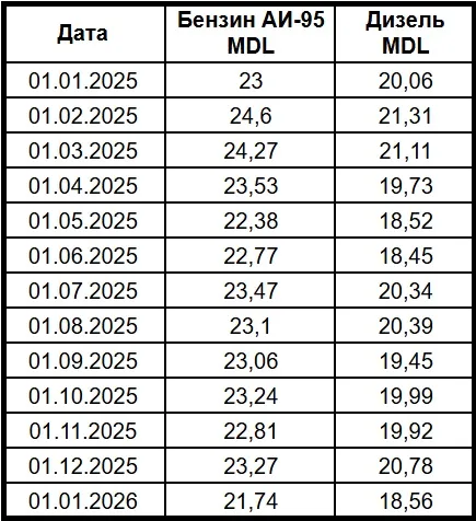 Для бензина повышение акцизного налога составляет 0,56 лея за литр, а для дизельного топлива — 0,26 лея за литр, с учетом НДС.