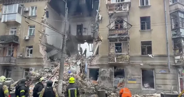 В одном из многоквартирных домов после обстрела произошло обрушение целого жилого пролета.
