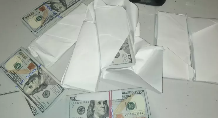 Денежные средства, завернутые в бумагу пачки банкнот номиналом по 100 долларов, изъяли и отправили на конфискацию.