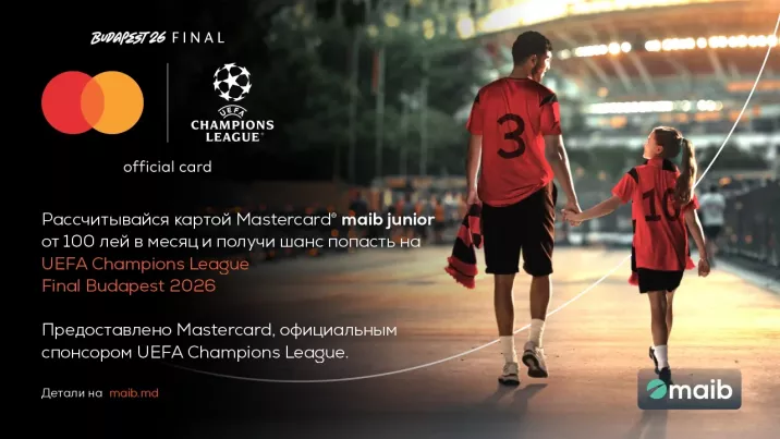 С maib и Mastercard ваш ребёнок может выйти на поле на финале Лиги чемпионов УЕФА 2026 в Будапеште (P.)
