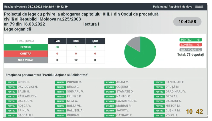 UPDATE 10:42 A fost aprobat proiectul de lege cu privire la abrogarea unui capitol din Codul de procedură civilă a R. Moldova.