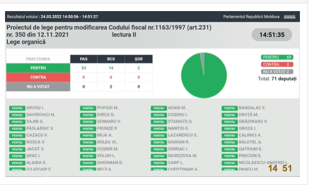 UPDATE 14: 51 Deputații au votat în lectură finală pentru modificarea ar. 231 din proiectul de lege pentru modificarea codului fiscal.