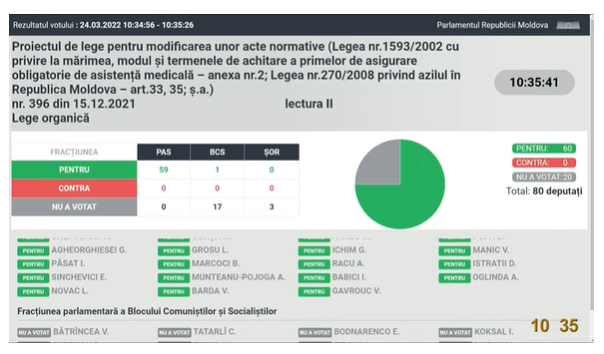 UPDATE 10:35 A fost aprobat în lectura a doua proiectul de lege pentru modificarea unor acte normative cu privire la mărirea, modul și termenele de achitare a primelor de asigurare obligatorie de asistență medicală.