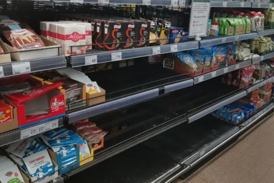 Din cauza războiului împotriva Ucrainei, în mai multe regiuni ale Rusiei lipsesc o parte din alimente. În toată țara există un deficit de zahăr, hrișcă și sare. În plus, din cauza sancțiunilor impuse de companii, există un deficit de „scutece” și produse de igienă personală.
