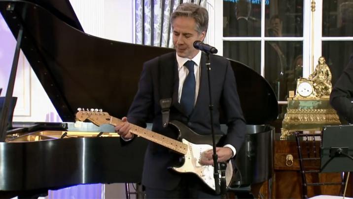 Secretarul de Stat al SUA a interpretat piesa „Hoochie Coochie Man” a lui Muddy Waters la o cină oficială pentru lansarea programului numit Inițiativa Globală de Diplomație Muzicală. Anterior, Antony Blinken făcea glume că probabil ar „goli casa” dacă ar lua o chitară pentru a interpreta impecabil o clasică melodie blues.