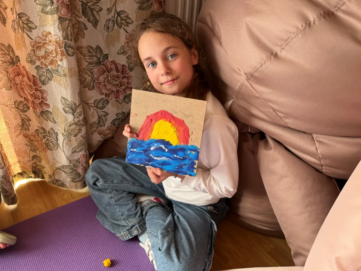 Terapia de grup are loc zilnic. Psihologii folosesc graficul culorilor pentru a descrie emoțiile și îi încurajează pe copii să se exprime prin desen. Un băiat de șapte ani, Zahar, a numit lucrarea sa „Tata se întoarce acasă”. Desenul ilustrează bărbați galbeni pe fundal albastru, culorile drapelului ucrainean.