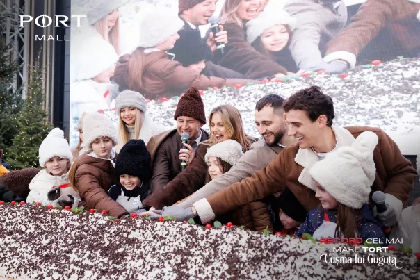 PORT MALL a dat startul sărbătorilor de iarnă printr-un nou record național. Cel Mai Mare Tort „Cușma lui Guguță” a fost preparat de Morărița Catering în fața a mii de vizitatori, uniți de nostalgia tradiției și copilăriei.