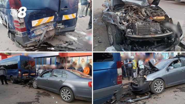 Серьезная дорожная авария произошла сегодня утром около 9:30 в Сороках. Там автомобиль Volkswagen врезался в микроавтобус Mercedes-Benz, ожидавший пассажиров на остановке.